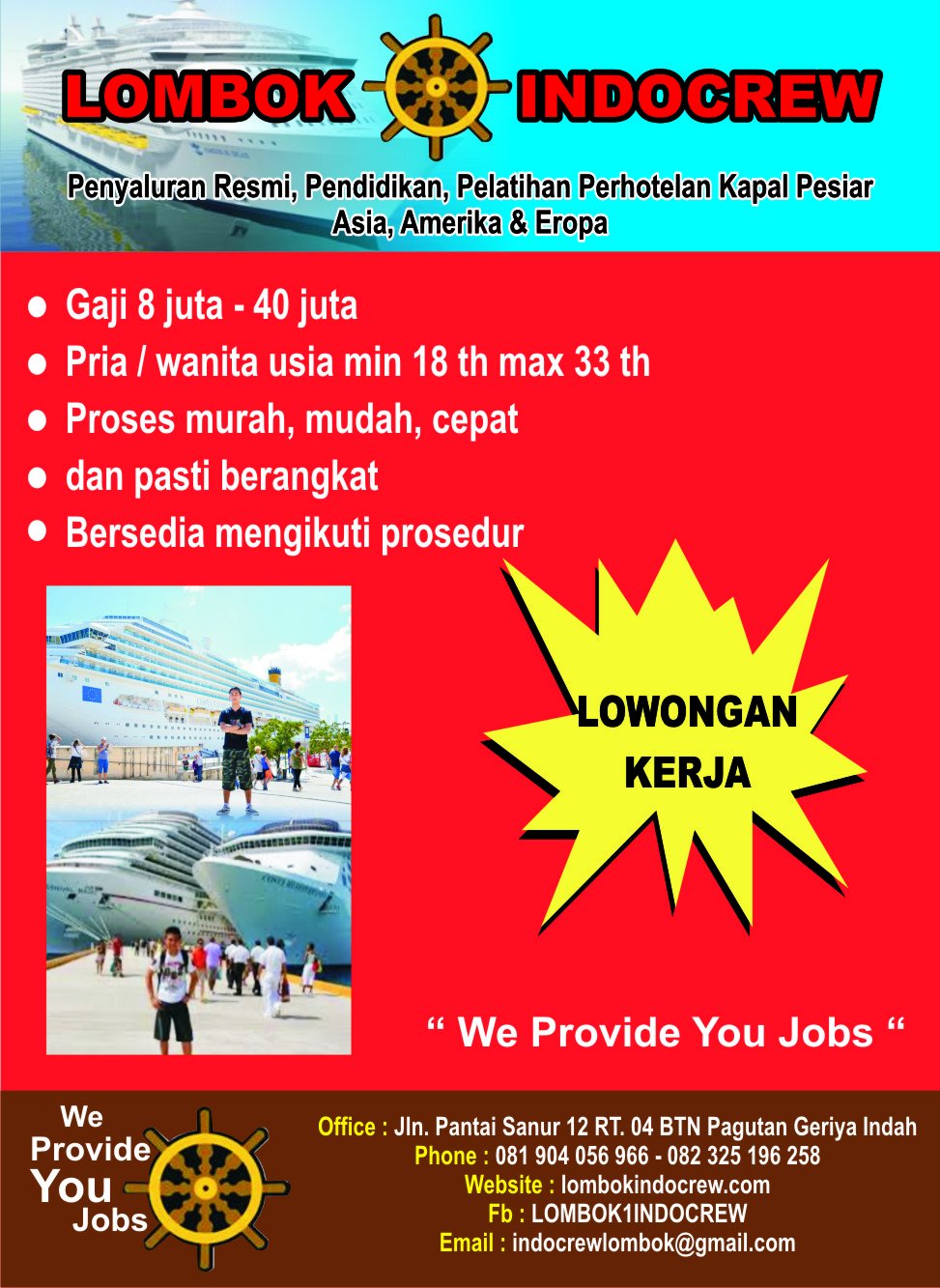 Kami menyelamatkan 10 warga asing dan 10 turis asing dan lima warga indonesia. Tetapi ada juga yang masa berlakunya lebih dari waktu tersebut, misalnya 1. Warga negara indonesia yang hilang termasuk empat awak kapal dan seorang pemandu wisata. Lowongan ker… read more loker kantin kapal lombok / lowongan kerja tasikmalaya tanpa ijazah free photos. Jadwal pelayanan kapal roro fery dari pelabuhan padang bai bali ke pelabuhan lembar lombok maupun sebaliknya dari pelabuhan lembar lombok.
